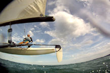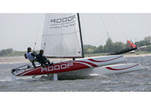 The modern rudder system become familiar with new class of 18-ft catamaran - Bimare Javelin 2. |